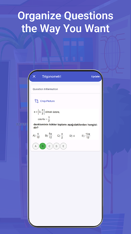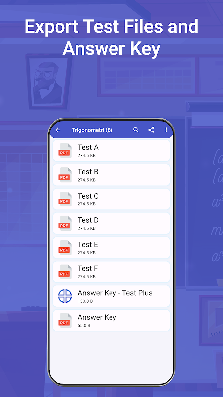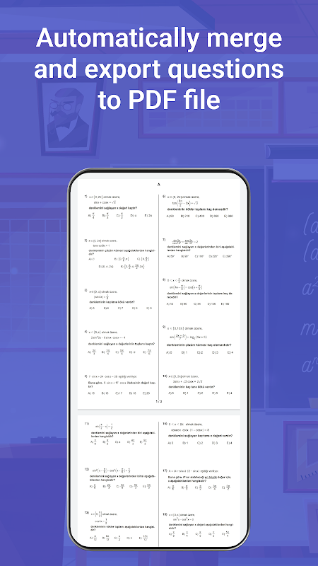 You can create tests or exams by transferring ready-made test questions to the application and selecting the questions you want. You can transfer the test questions to the application via pictures or by taking a photo with the device camera. You can edit the image by cropping the question while adding exam or test questions. You can transfer test or exam questions to the application via pdf documents. After selecting the document containing the test or exam questions, you can move between the pages and select the questions on the pages you want. You can mark the correct answer for test or exam questions. Tests containing questions can be stored in the device's storage or in external storage such as Google Drive. You can save exam or test questions in separate files based on subject. For exams, you can create a new test and add new questions to the test. If you want, you can also choose the exam questions from the test questions you have previously created.