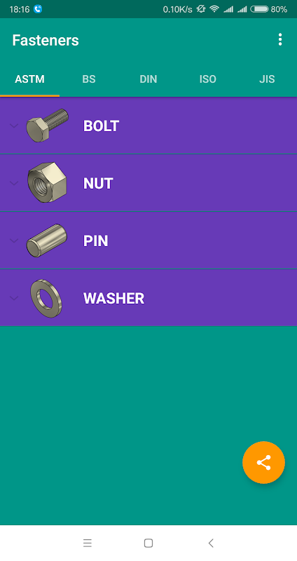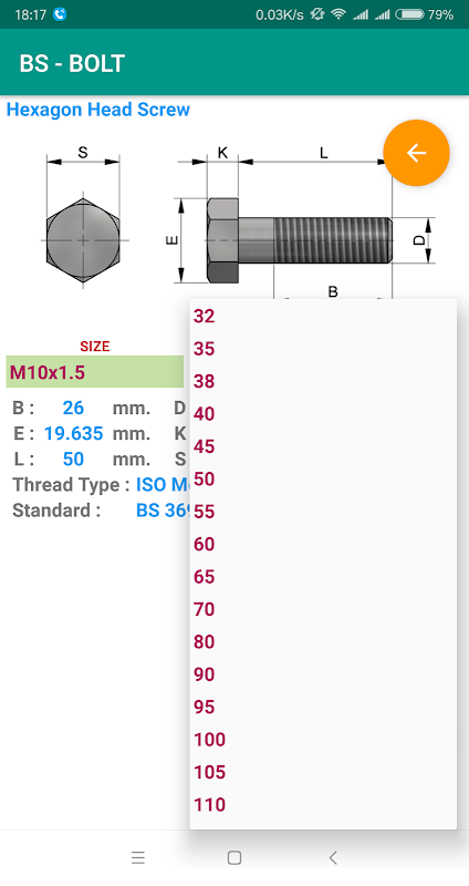 This application is dimension of fastener. It has many types of bolt, nut, pin and washer in ASTM, BS, DIN, ISO and JIS standard.