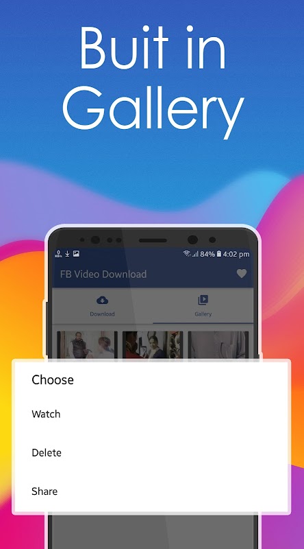 ✔️ Watch , share/send or remove downloaded video in built in free gallery