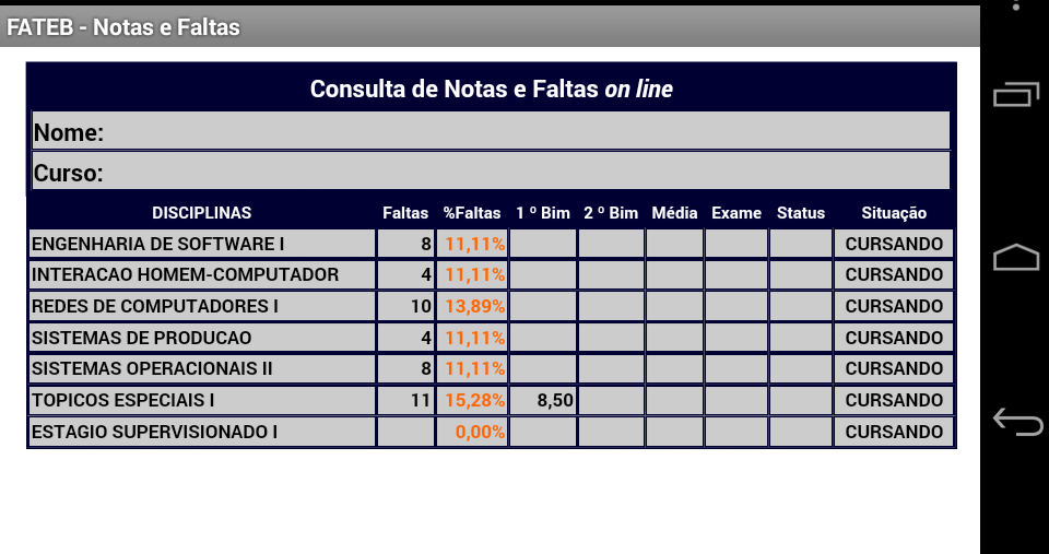 Consulta de faltas e notas de alunos da Faculdade de Tecnologia de Birigui - FATEB