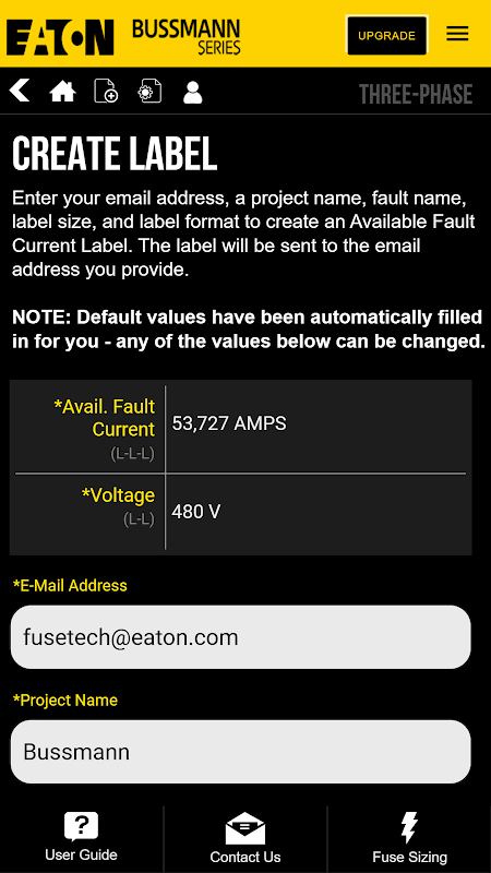 - Create and send a label via email for marking the available fault current on service equipment (NEC® 110.24)