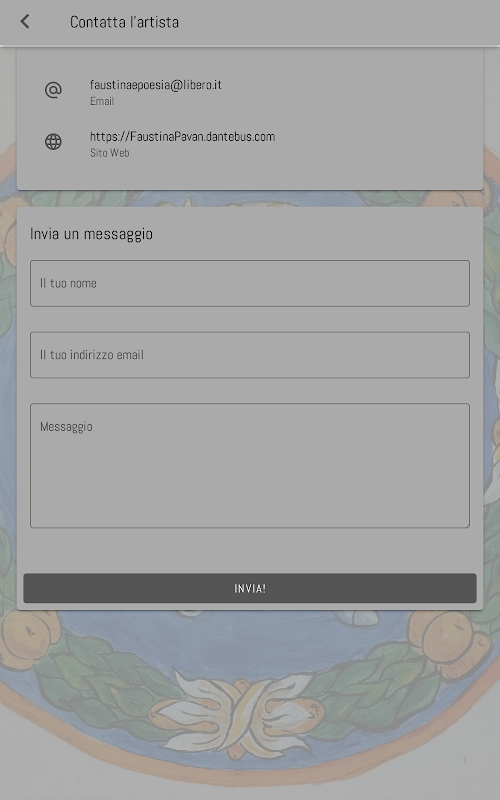 - Centralized Contact Section: Easily find Faustina Pavan's contact information in a dedicated section. Send direct messages to the artist for direct and immediate communication.