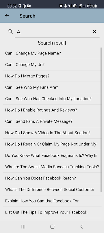 The application contains many interview questions and answers for Facebook Marketing. We can also add your questions. The next version will be able to answer the question from the user (you)