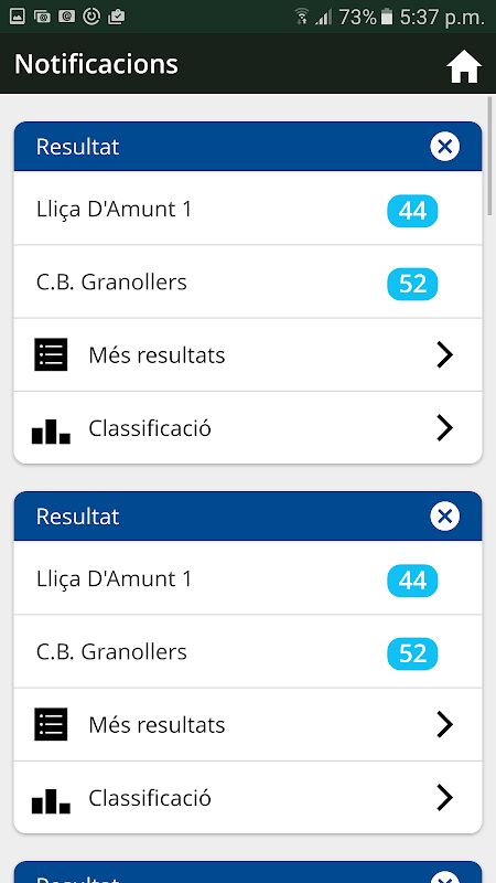 Els usuaris podran marcar els clubs, els equips o les competicions preferides destacant-los de la resta; rebent notificacions amb els resultats que es produeixin durant el cap de setmana tan aviat com es disposi d'ells, oficialment; i poder consultar les classificacions de cada grup i jornada.