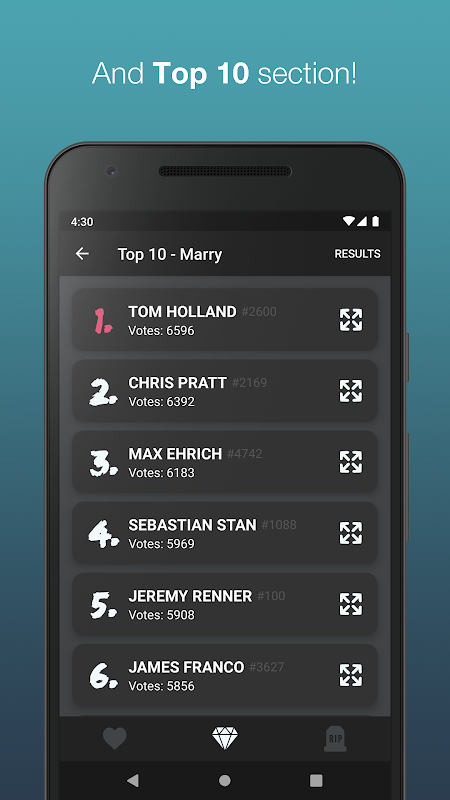 Fck, Marry, Kill! or simply FMK! is an awesome app to vote for your favorite celebrities by using 3 options.