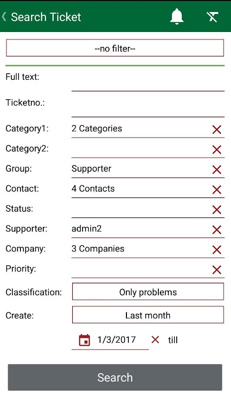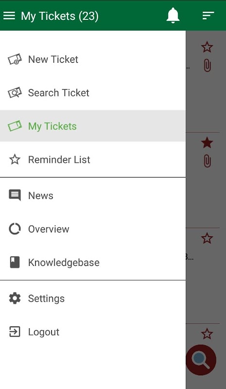 Create new tickets with the app. Depending on legal structure, you can complete your tickets e.g. with due date, responsible supporter groups, categories or the expected effort. Transfer also closed tickets into the knowledgebase to document all important support processes. In addition, the app shows you tickets grouped by priority or status.