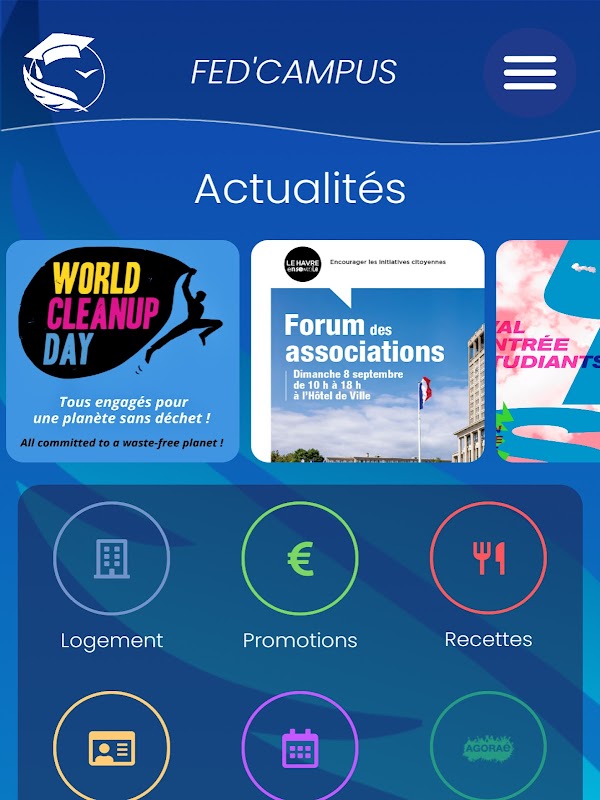 At the start of the 2024 school year, FED’LH is launching its application entirely dedicated to students in the city of Le Havre. Its main aim is to be a useful and essential tool for Le Havre students, due to its informative and practical side. This application is made up of 12 sections allowing students to find recipes, jobs, internships, work-study programs, their BDE, useful contacts, and many other things! the best tool for your student life in Le Havre!