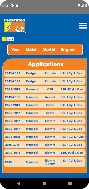 Choose the classic “Application Search” lookup to search by your vehicle’s year, make, model, and engine or switch to the updated “Dynamic Search”. With the dynamic search box, you can search for your vehicle by typing part or all your vehicle’s description and selecting from the suggestion list. You can also use the dynamic search box to enter a Federated part number to get to the product information page or enter an OE or competitor part number to interchange it to a Federated part