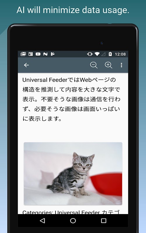 This function will display the feed article easier to view. It extracts the required content with AI to display large text and image. It will save you data usage, and also allow you to switch the image display.