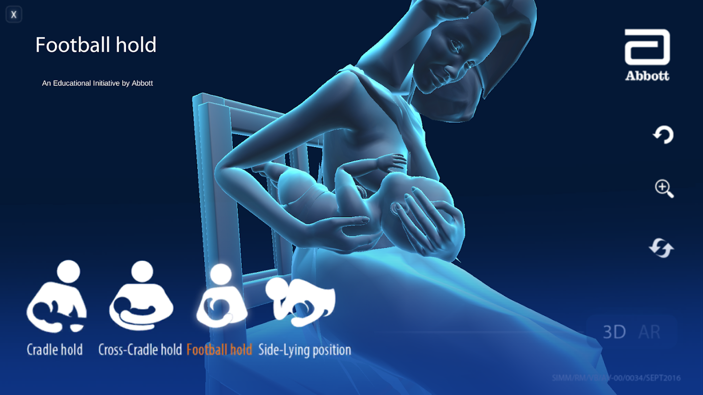On selection of 3d mode.One can see 4 individual breast feeding poses.Each pose can be rotated and scaled in 3d for a better view.