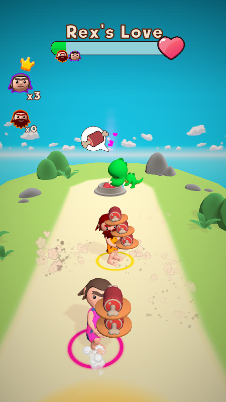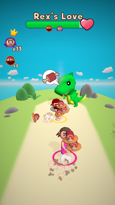 Avoid obstacles, and other competitors, to deliver more and more food in search of Dino's love.