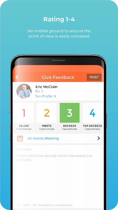 The feedback giver is anonymous so it’s safe to speak freely. As a feedback recipient, hearing diverse points of view helps accelerate your development and decision making.