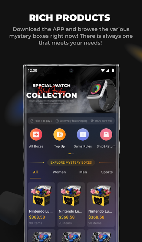 Here you can open mystery boxes to get good offers for real items. Open boxes and get electronics, gaming gadgets, items for geeks, sports equipment, toys, video games, and other trendy products with a discount much cheaper than on retail! On Feelyell you can always see what's inside our mystery boxes before you open them, and be certain that we’ll deliver any item in time anywhere in the world.