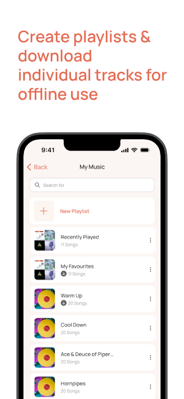 Create personalized playlists, download tracks for offline use, and customize the FEIS app to match your dance organization and region.