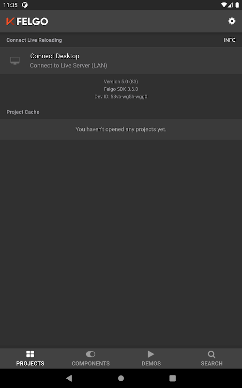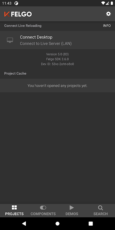 The Projects viewer allows you to develop Felgo apps & games on your desktop, and view the result in real-time on your device, without installing mobile SDKs.