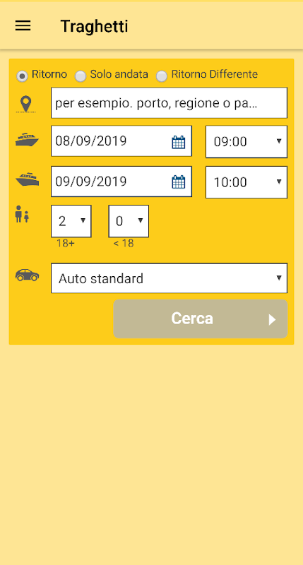 • Route of return - if traveling back and forth, as an option the user enters another port, where he is going to return.