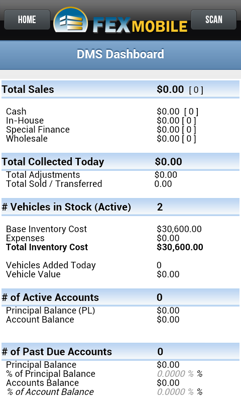 Our FEX Mobile Android App is the first DMS mobile application which is tightly integrated with FEX DMS. It allows dealers to quickly scan and decode VINs, then view relevant pricing information from NADA, KBB, BlackBook, and Manheim MMR. Additionally, dealers can view vehicle history reports from CARFAX and AutoCheck. In addition, pictures can be taken and uploaded to all vehicles.