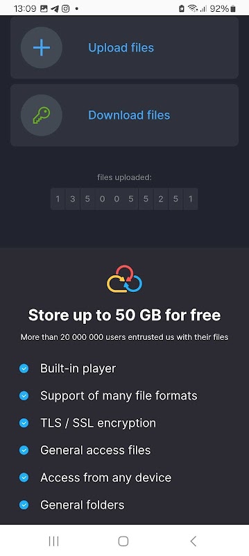 • Share files. Send links to friends and colleagues — quickly, conveniently, and without size