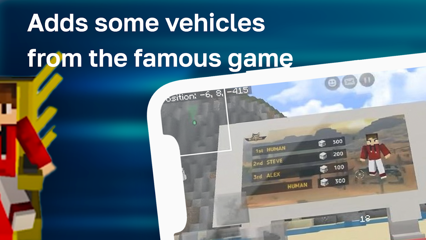 What is the essence of the battle royale game with the Fire craft Minecraft mod? Fifty people fly together in an airplane, from which they can drop off at any time. When falling to the ground, you must look for weapons and things that can help you in survival. You have limited time until the radiation zone or storm begins to shrink. During this time, you must overcome all your enemies and take the top 1, a kind of craft arena in Minecraft Pocket Edition, with the ff fire mod addon in survive mode.