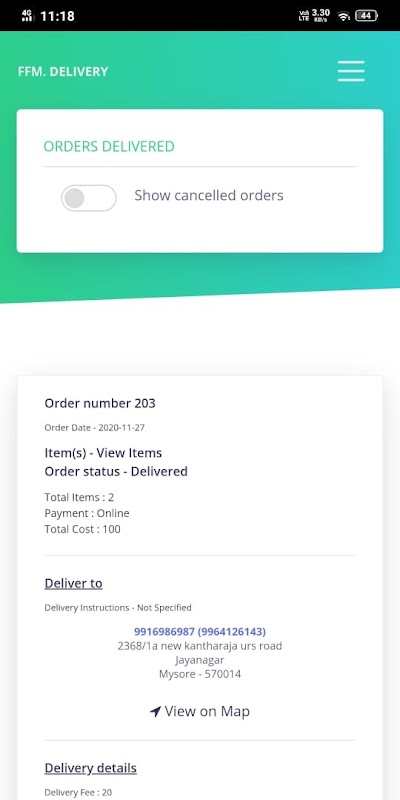 Delivery Agent App for Farmer Fresh Mysore