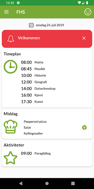 Here you get a modern tool for communication between school and student. Pupils have a complete overview of their own school life, and the school gets a platform for communication with the students. In the app you see your own schedule, you can enroll in the school's activities, see what is for dinner and get messages from the teacher / admin.