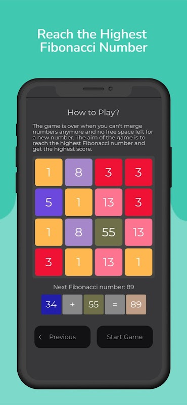 - The aim of the game is to reach the highest Fibonacci number and get the highest score.