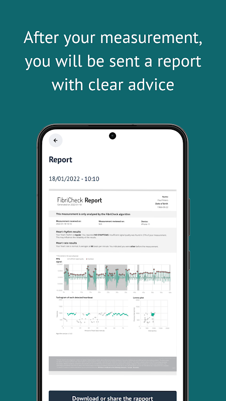 > Reports: After measuring your heart rhythm, you will receive a detailed report with clear advice.