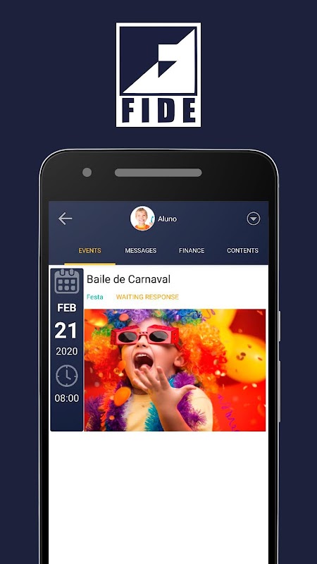 The FIDE application is intended for students and their guardians, as a way to keep themselves informed about the school's calendar, events, communications and other notifications.