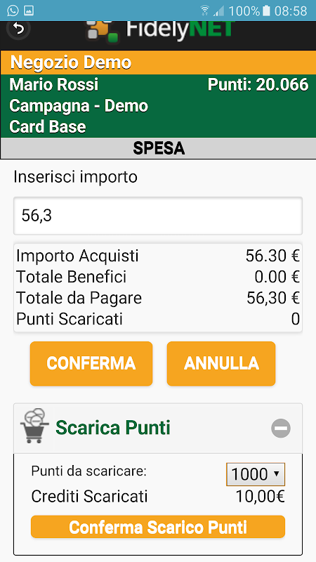 With the App FidelyNET Pos, you can upload the points on the Card directly using your smartphone.
