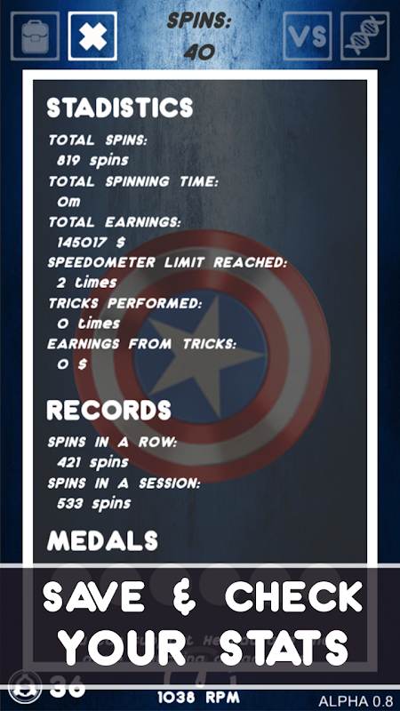 - Acumulate and expend your spins to unlock new spinner models and backgrounds.