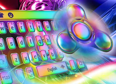 Colorful titanium alloy fingertip gyro keyboard, punk technology texture style, designed for hobby gyro technology cool you design, so cool multi-color neon-like titanium keyboard Whether you like science and technology, the future, the planet, Universe, gyro, etc., you are in love with this shiny colorful neon-like gorgeous fingertips gyro texture keyboard theme, and quickly download the keyboard theme, let your cell phone turned it!