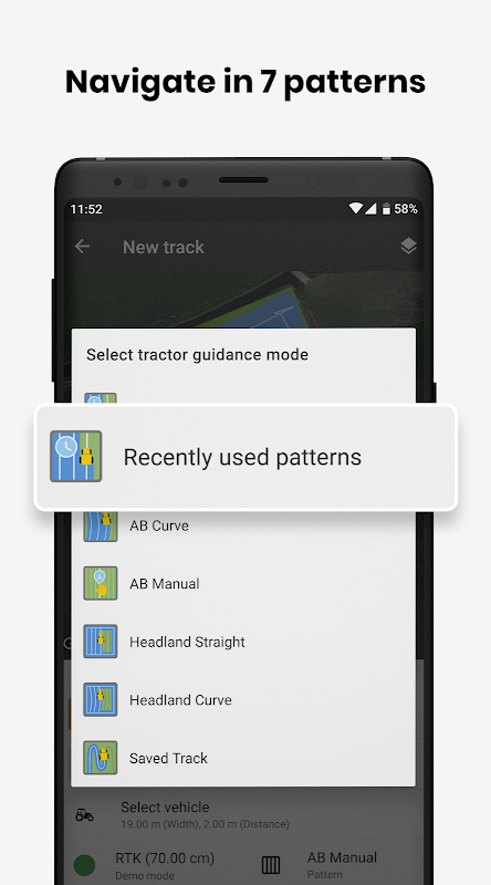 Use precise GPS guidance, create and manage fields, plan navigation lines, and record your work.