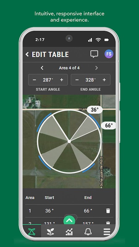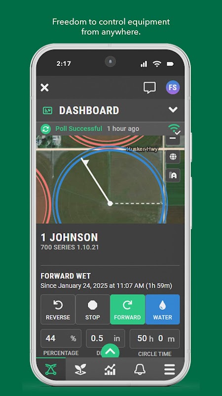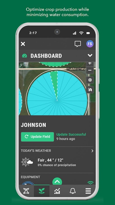• Tap each field to view a wealth of data: current weather, pivot status, soil moisture, and recent imagery!