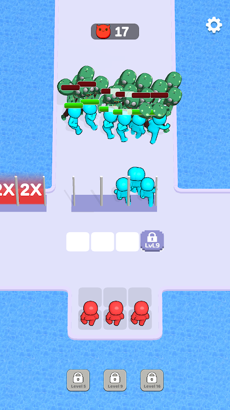 Match fighters with gates of the same color to multiply them and stop the enemy wave.