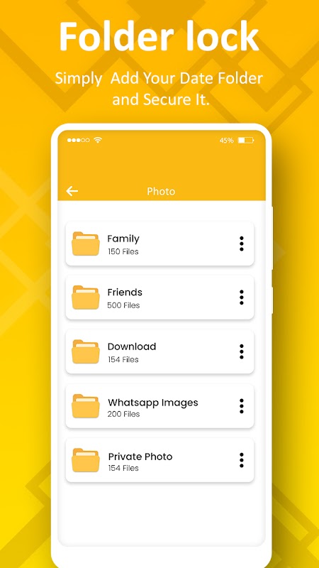 File Lock : Folder Password Lock app lets you password-protect your personal files (ex: photos, videos, documents, wallet cards, contacts, notes and audio recordings, etc…) in your Android Phones.