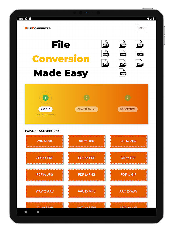 A simple and easy-to-use file converter to convert files easily and instantly. This app has intuitive and simple UI which is designed for casual user like you. It is an offline app, you don’t need an internet connection to convert your files.