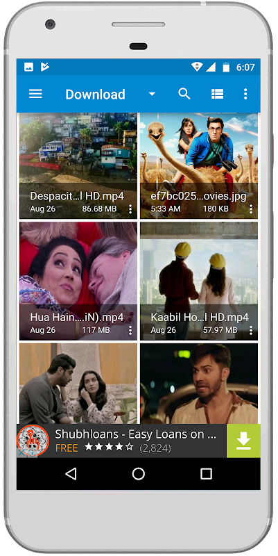 Full- featured file manager app Downloads / Images/ Audio/ Videos/ Documents/ New files i.e ,
