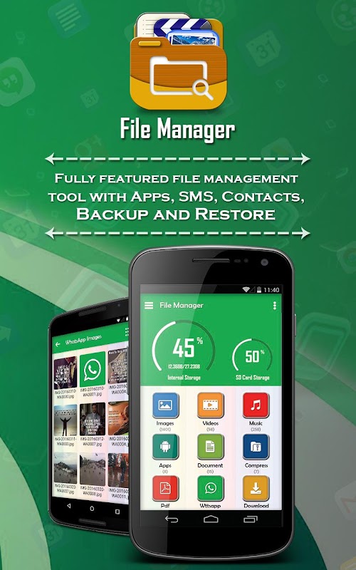 File Manager is the best File Explorer for smart phones. With File Manager, you can easily manage your files and folders in your device. File Manager allows you to browse your SD card, create folder, rename, cut, copy, move, and delete files.