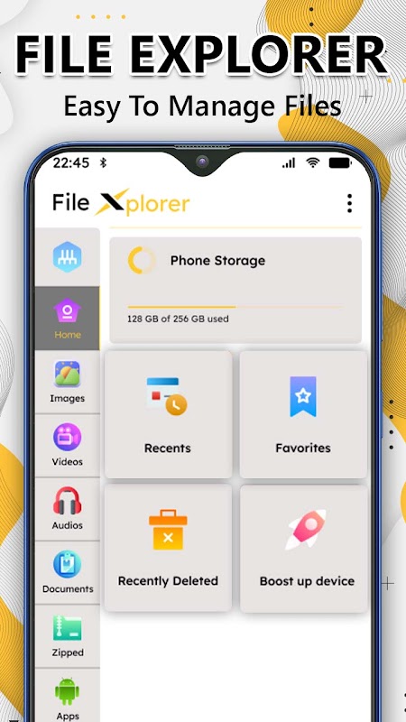 You can easily find any file like images, videos, audios, documents, zipped file, application, apks and much more in seconds with this all in one file viewer. You can also manage your files and folders on internal and external storage both and easily find the required file.
