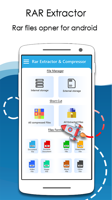RAR extractor for android is easy to use ZIP & tar encryption tool with a powerful file explorer. Use for quickly extracting RAR archive as ZIP file reader & .rar viewer for android. Compress your docs by using the RAR file opener and save your space.