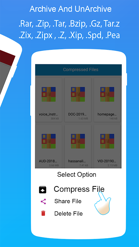- Decompress or extract rar and open compressed zip from phone