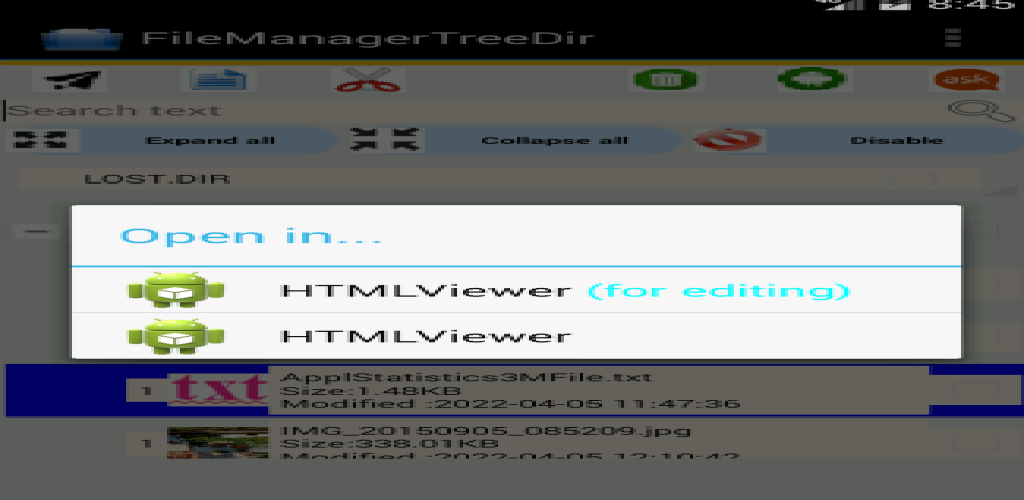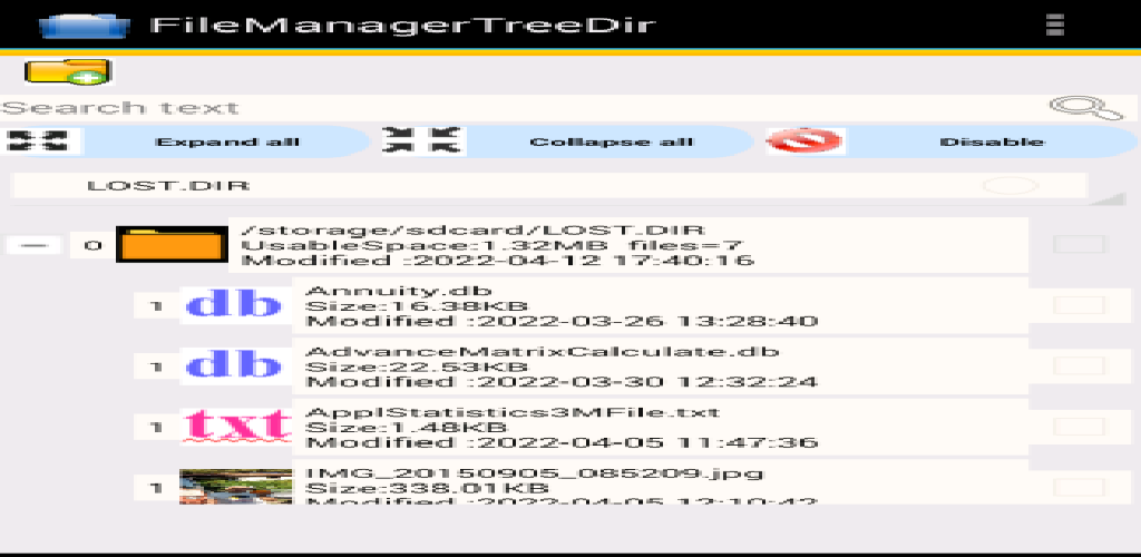 The application File Manager Tree Directory is intended to serve directory of files on a device running Android. Primary distinction from other applications with the same purpose is that the directory displays and manipulate like a tree.