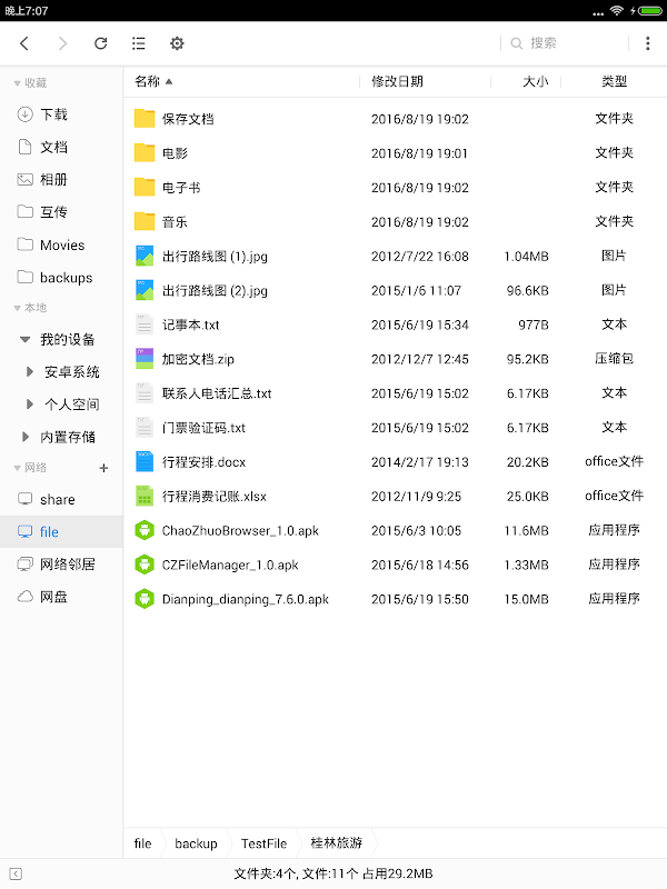 File Manager is a file management tool running on Android system, which supports touch screen, external mouse/keyboard and telecontroller, it provides a easy way to manage files on both your local disks and the file servers in your local network.