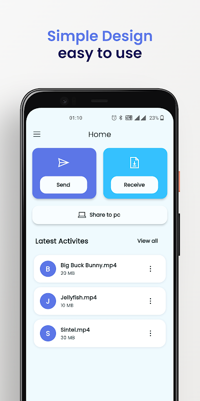 File Share App | File Transfer | File Sender app satisfies all your file transfer needs perfectly. Just select videos, photos, music, apps & e-book, pdf files or any other files, it will transfer them to your friends at a lightning speed without the network.