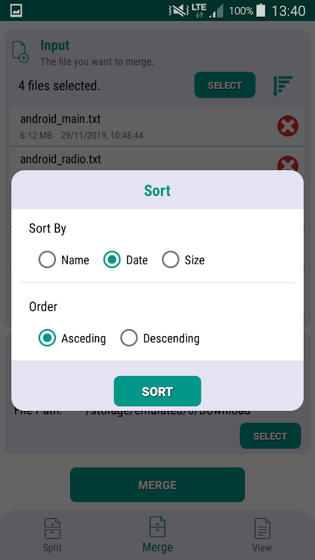 Merging restores the original file from previously split parts, with sorting by name, date, or size to reduce mistakes. In the File Splitter latest version, this ordering helps reassemble files after a transfer or backup. If you split complex formats like audio, video, or PDFs, the fragments might not open on their own, but they work normally once merged.