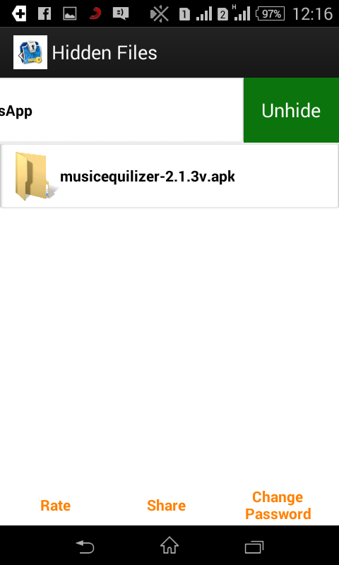 4.Long press on folder that you want to hide in Unhidden screen and also long press to unhide folder in Hidden list of folders.
