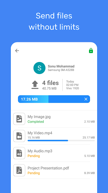 • For extra security, the sender needs to accept the connection request from the receiver. So the sender can check the name of the receiver before sending files and accept or reject accordingly.