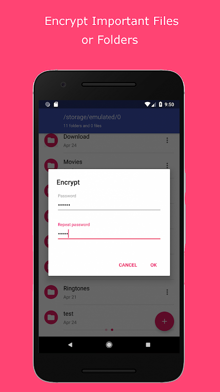 - AES Encryption and Decryption of files for security If your device has a fingerprint sensor you can use it to open encrypted files without a need to provide the password.