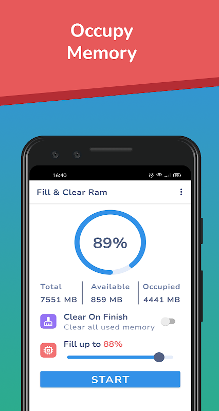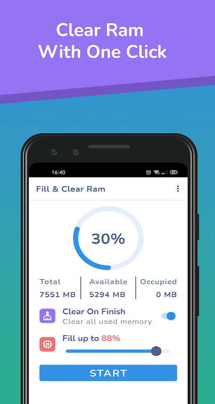 Fill RAM memory, clear RAM with one click, improve and test performance