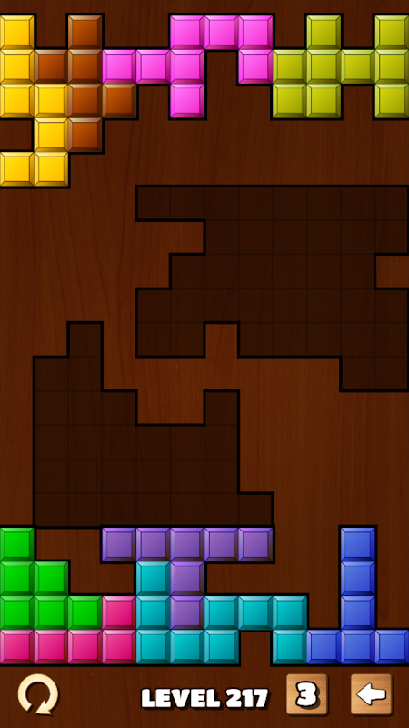 With pieces of various types of blocks are populating the game panel at the center of the screen.
